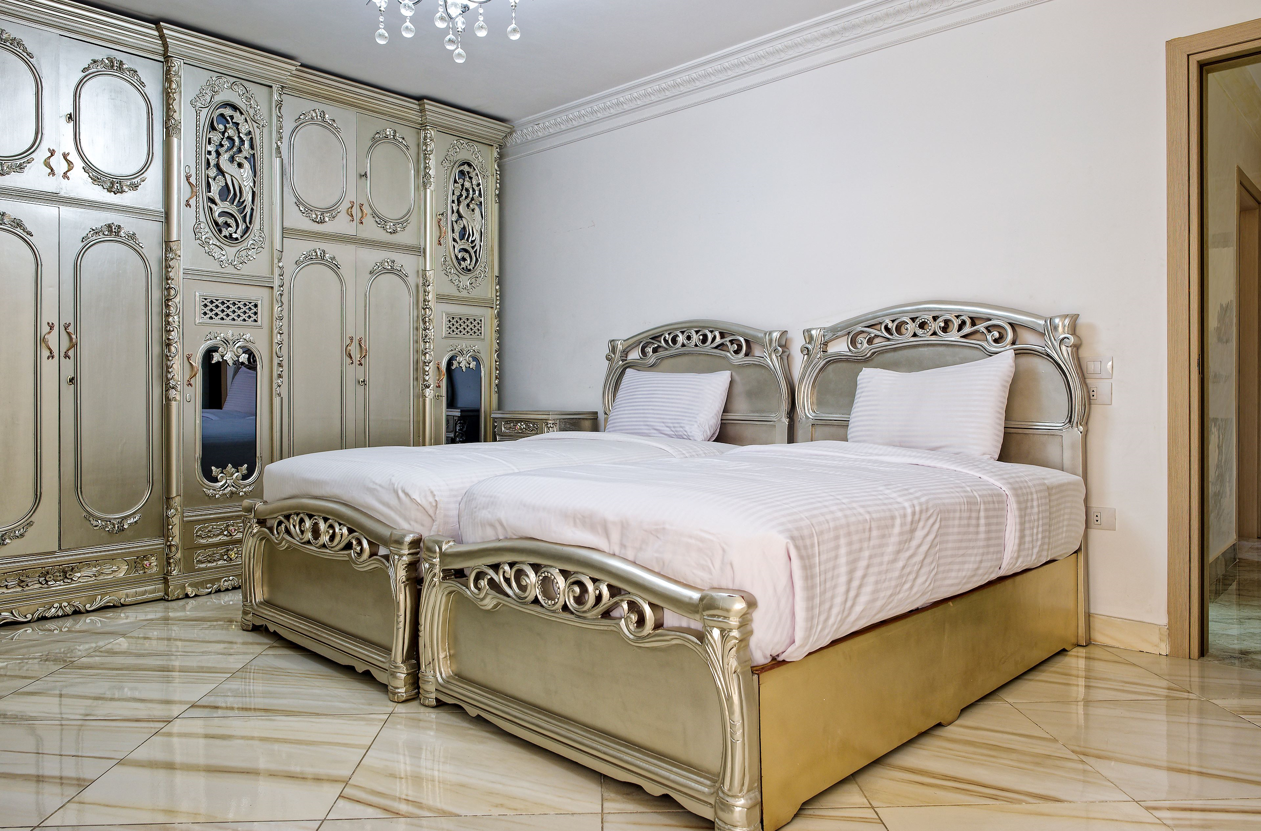 Two Bedrooms apartment located in Heliopolis, Cairo. A very fresh theme in the heart of Heliopolis. Complimentary housekeeping is provided on the 7th day for stays of a full week. Additional housekeeping can be arranged through the channel by contacting us for an extra fee. and free Wi-Fi.