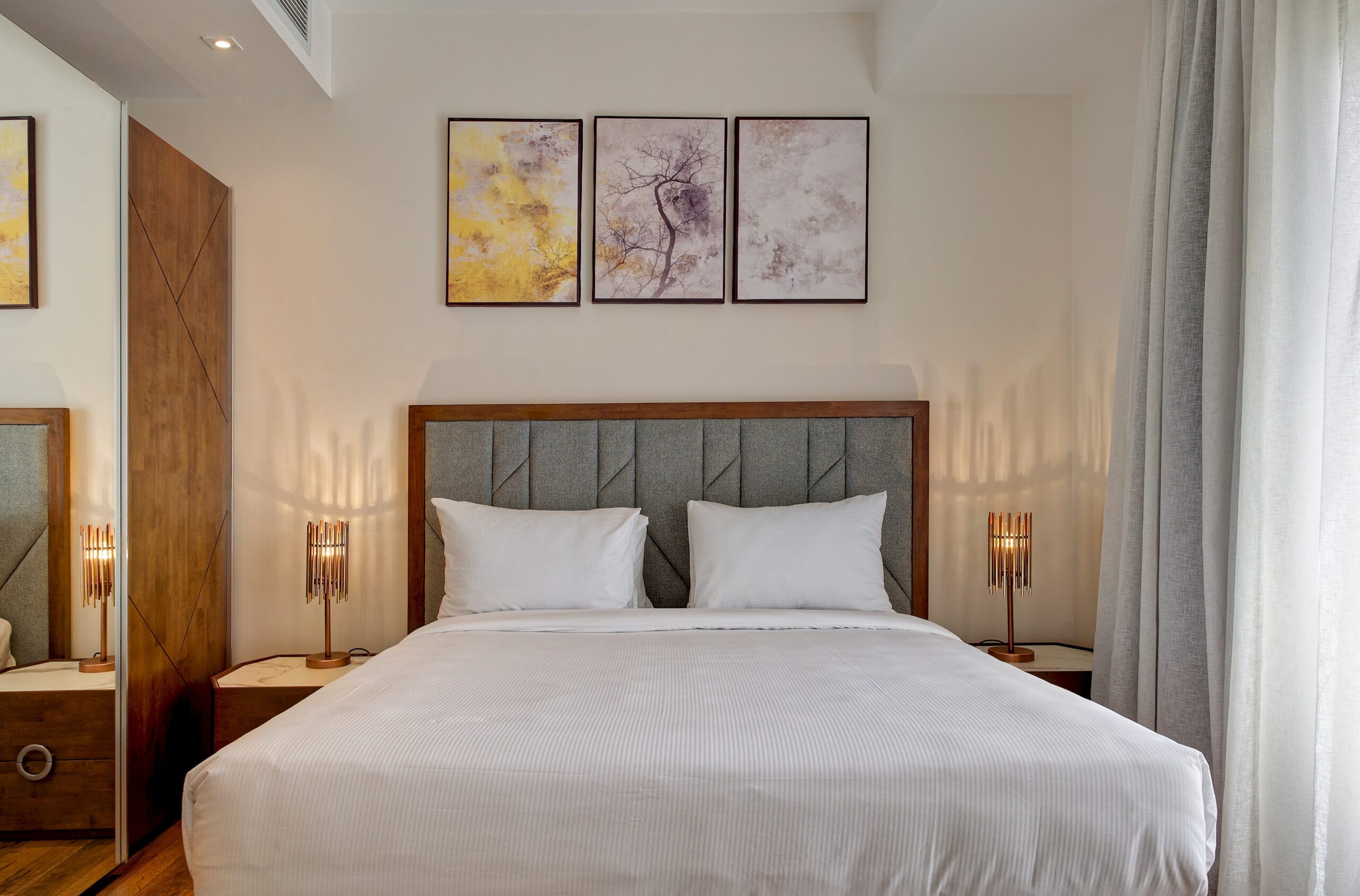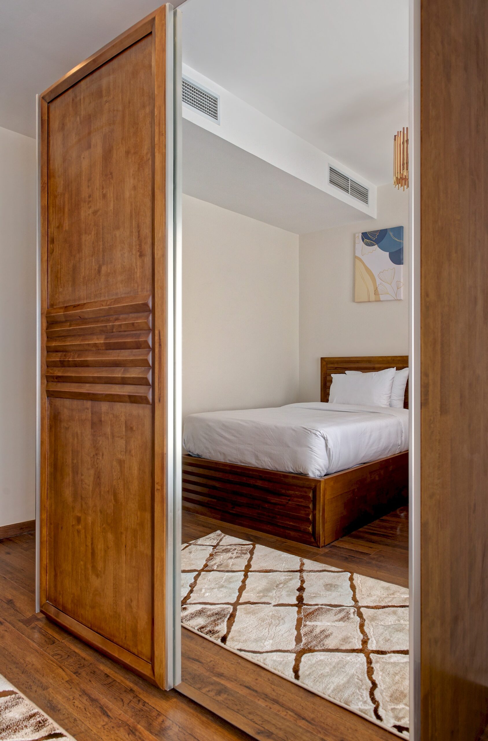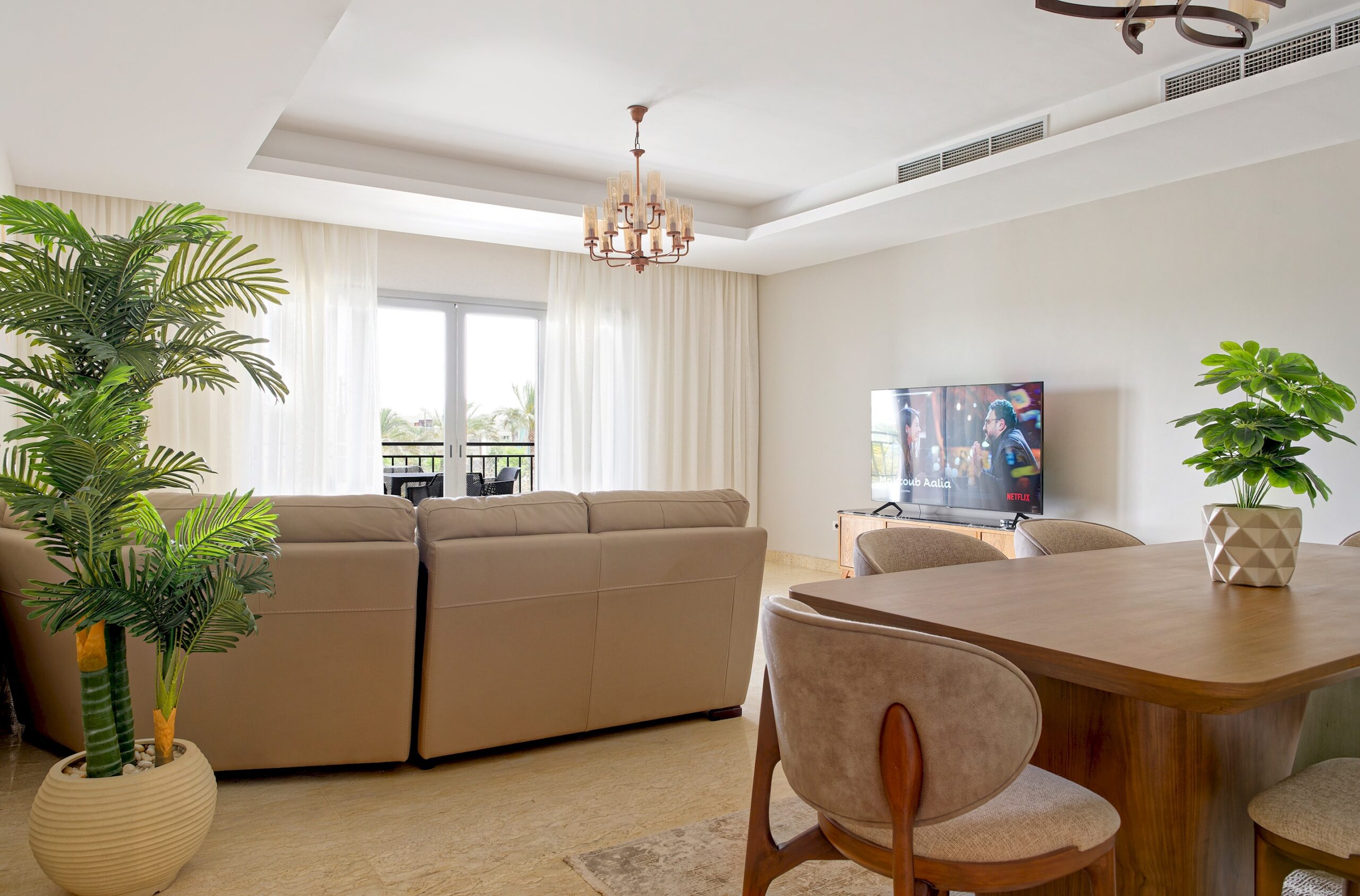 CFC Apartment 6225 is located in Cairo Festival City, Cairo. A very fresh theme in the heart of New Cairo overlooking IKEA. Complimentary housekeeping is provided on the 7th day for stays of a full week. Additional housekeeping can be arranged through the channel by contacting us for an extra fee. Netflix and free Wi-Fi.