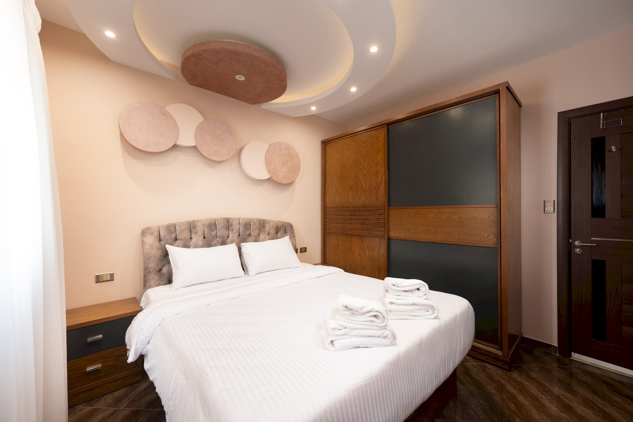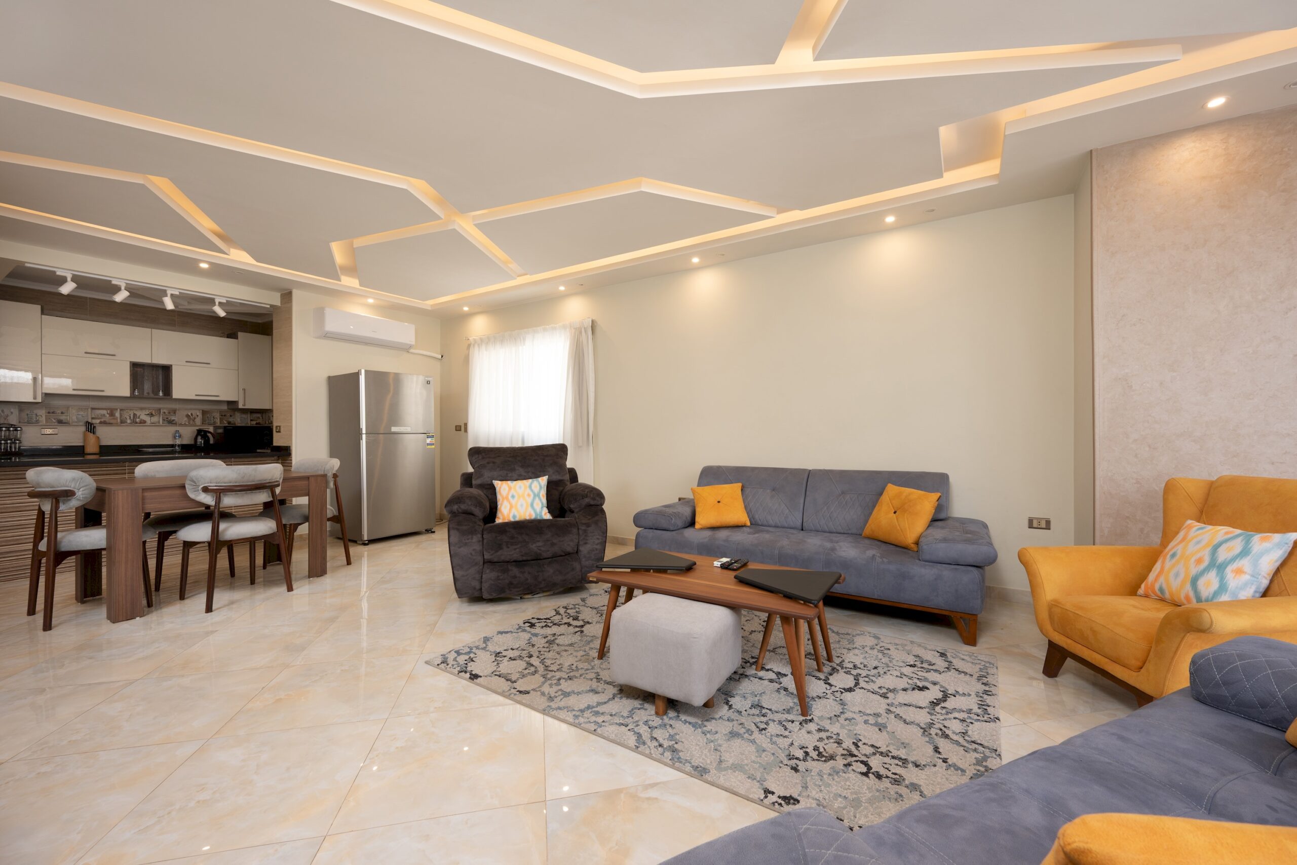 Two Bedrooms Apartment located in New Cairo. A very modern theme in the heart of New Cairo. Complimentary housekeeping is provided on the 7th day for stays of a full week. Additional housekeeping can be arranged through the channel by contacting us for an extra fee. Netflix and free Wi-Fi.