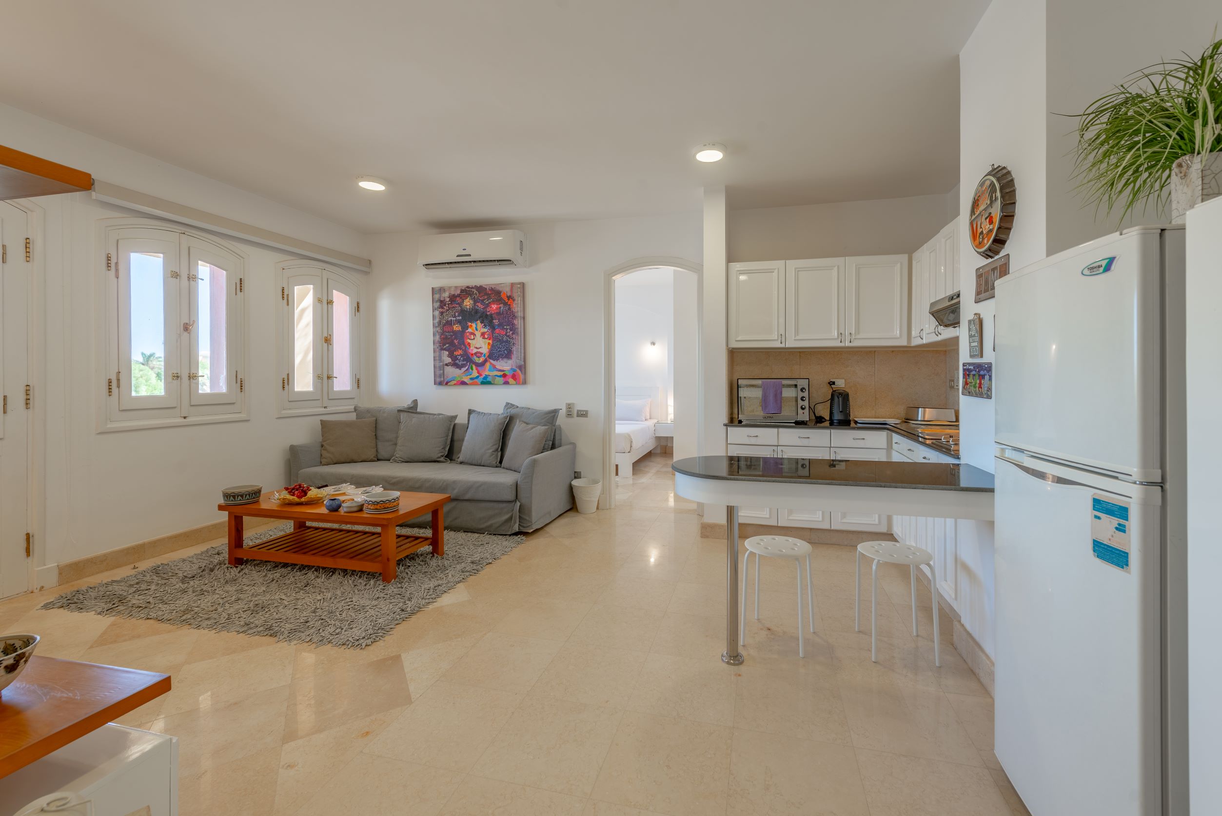 Apartment W2 is located in El Gouna Upper Nubia area (3 min walk to the Marina). A very relaxing theme that comes with a private lagoon is the main premise of the villa. Guests enjoy our hotel services of housekeeping every 2 days, room service, Netflix and free Wi-Fi.