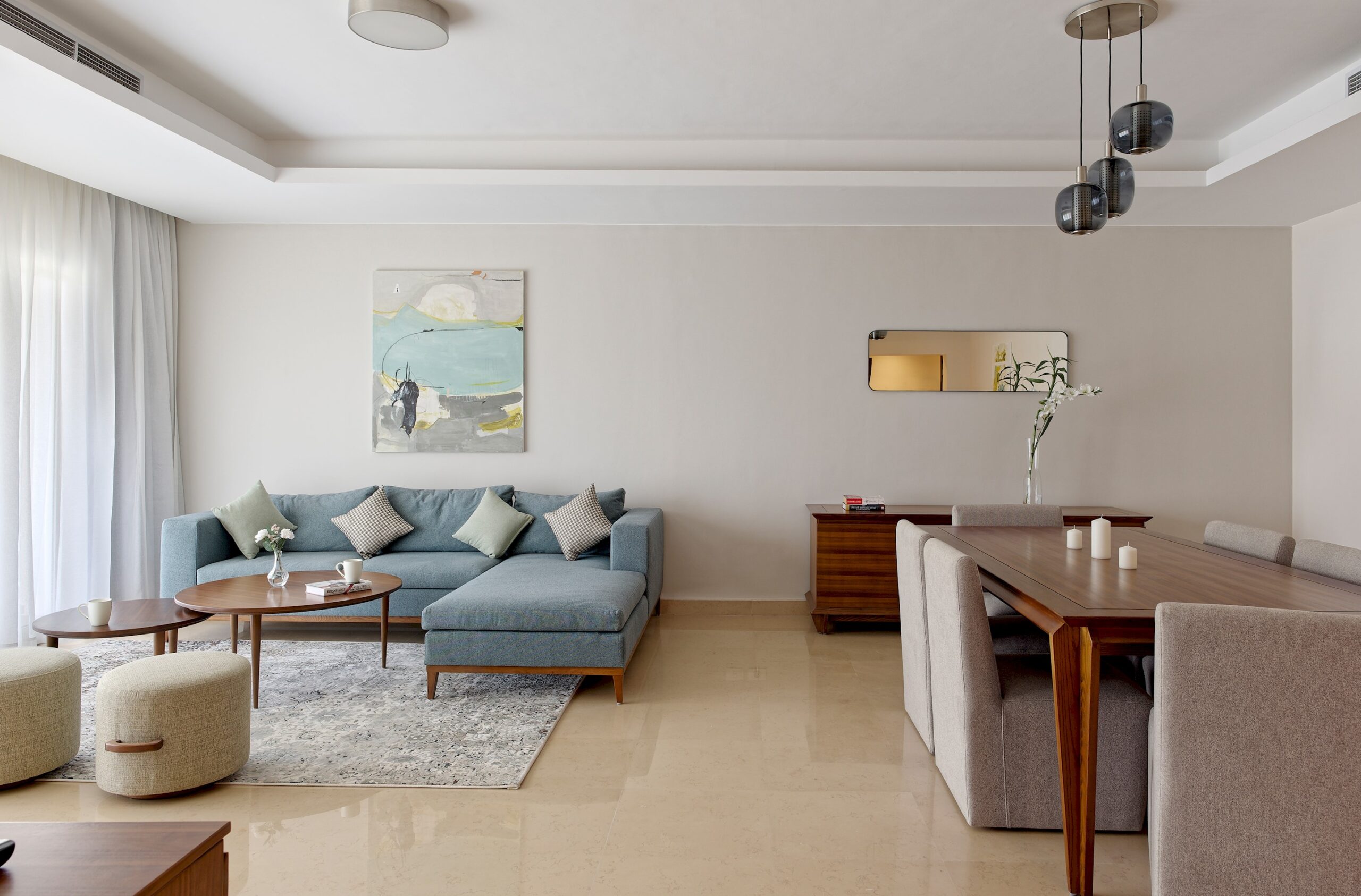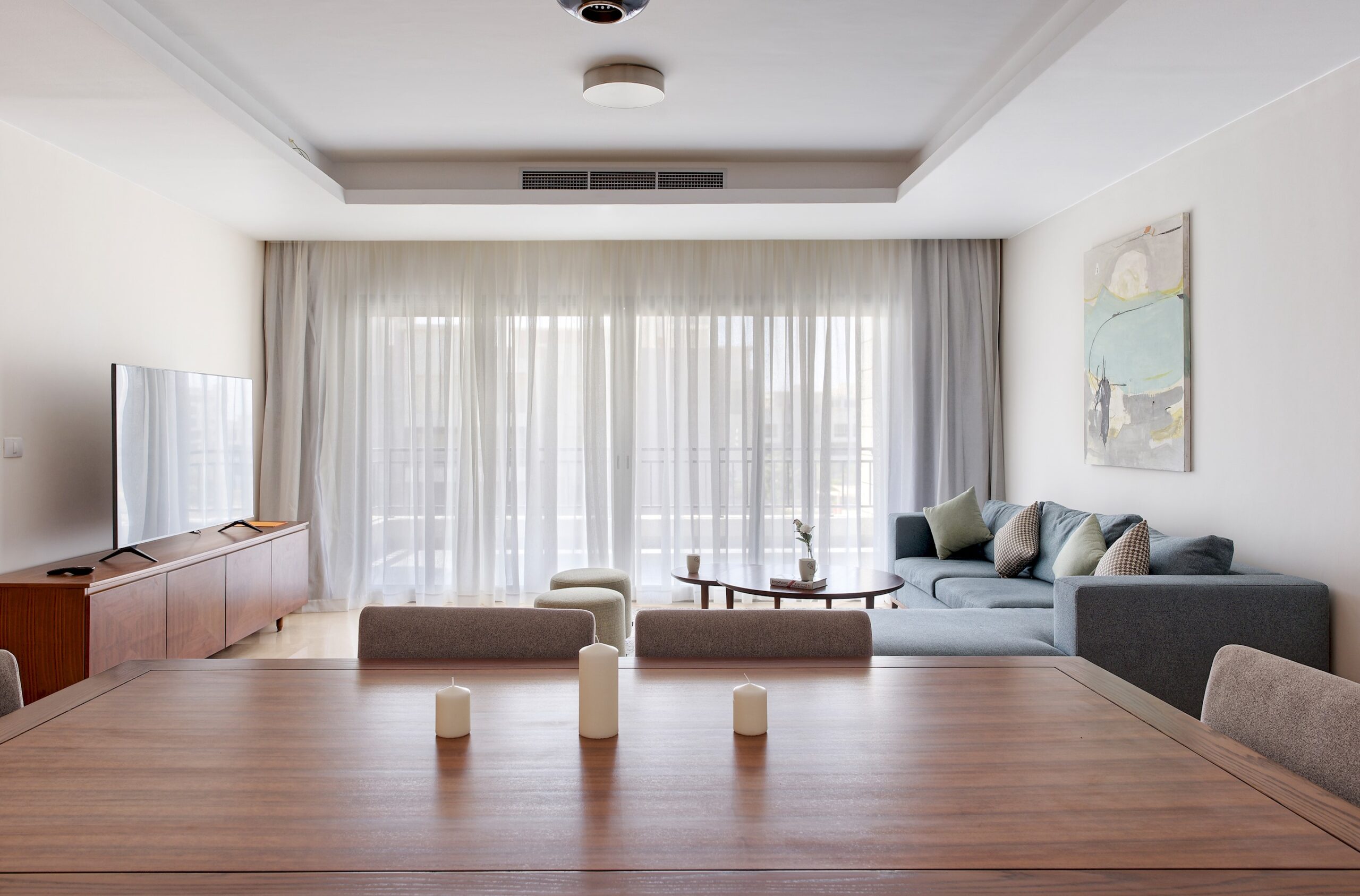 CFC Apartment 6222 is located in Cairo Festival City, Cairo. A very fresh theme in the heart of New Cairo overlooking IKEA. Complimentary housekeeping is provided on the 7th day for stays of a full week. Additional housekeeping can be arranged through the channel by contacting us for an extra fee. Netflix and free Wi-Fi.
