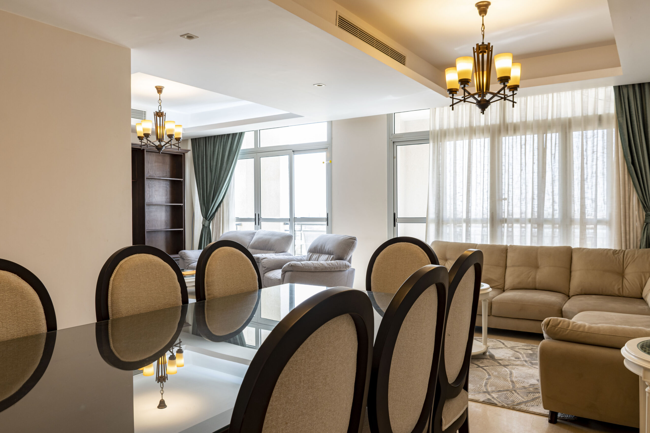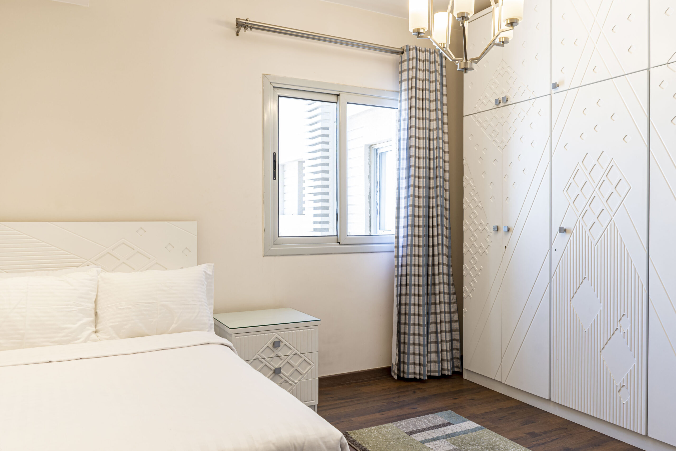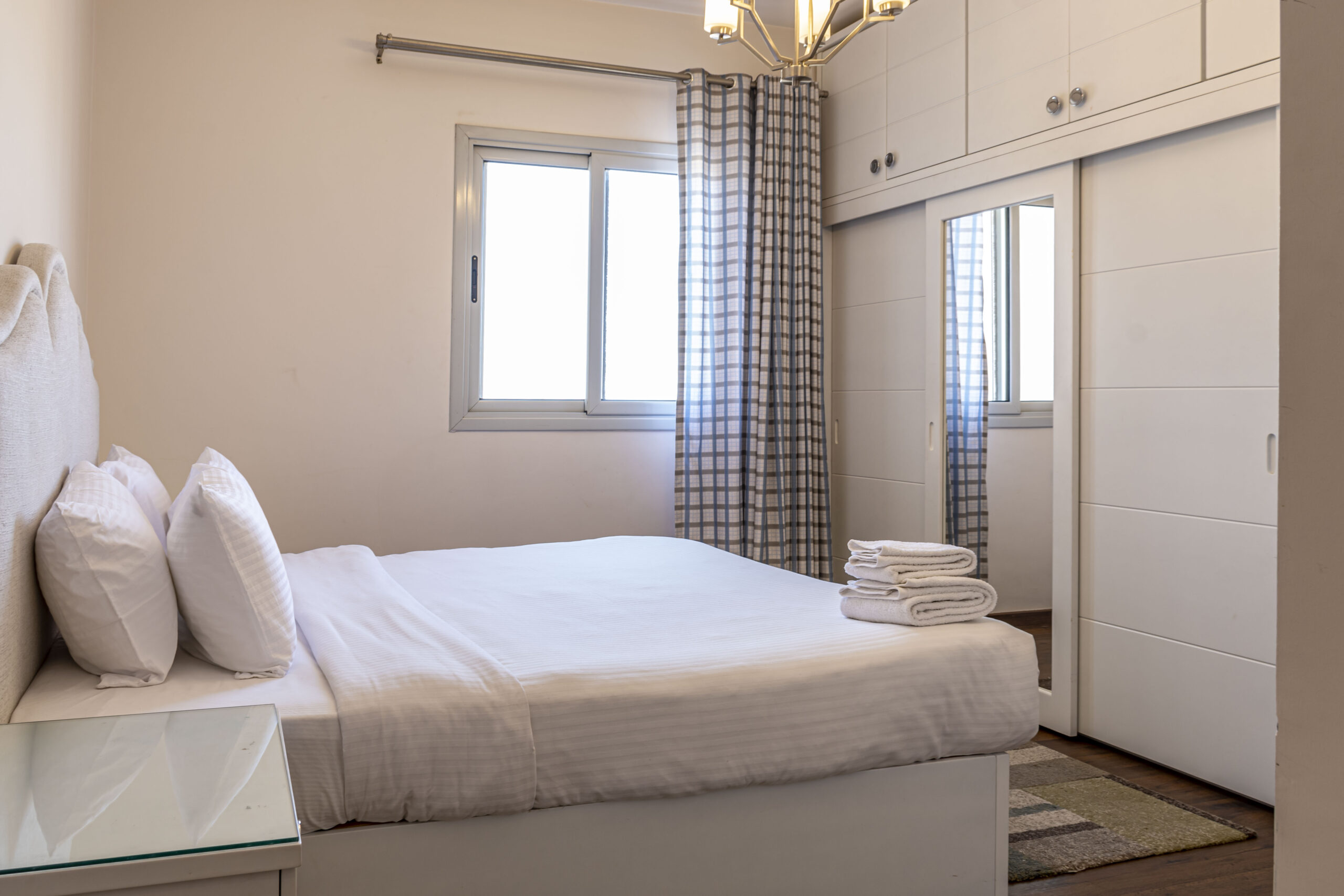 CFC Apartment 3156 is located in Cairo Festival City, Cairo. A very fresh theme in the heart of New Cairo overlooking IKEA. Complimentary housekeeping is provided on the 7th day for stays of a full week. Additional housekeeping can be arranged through the channel by contacting us for an extra fee. Netflix and free Wi-Fi.