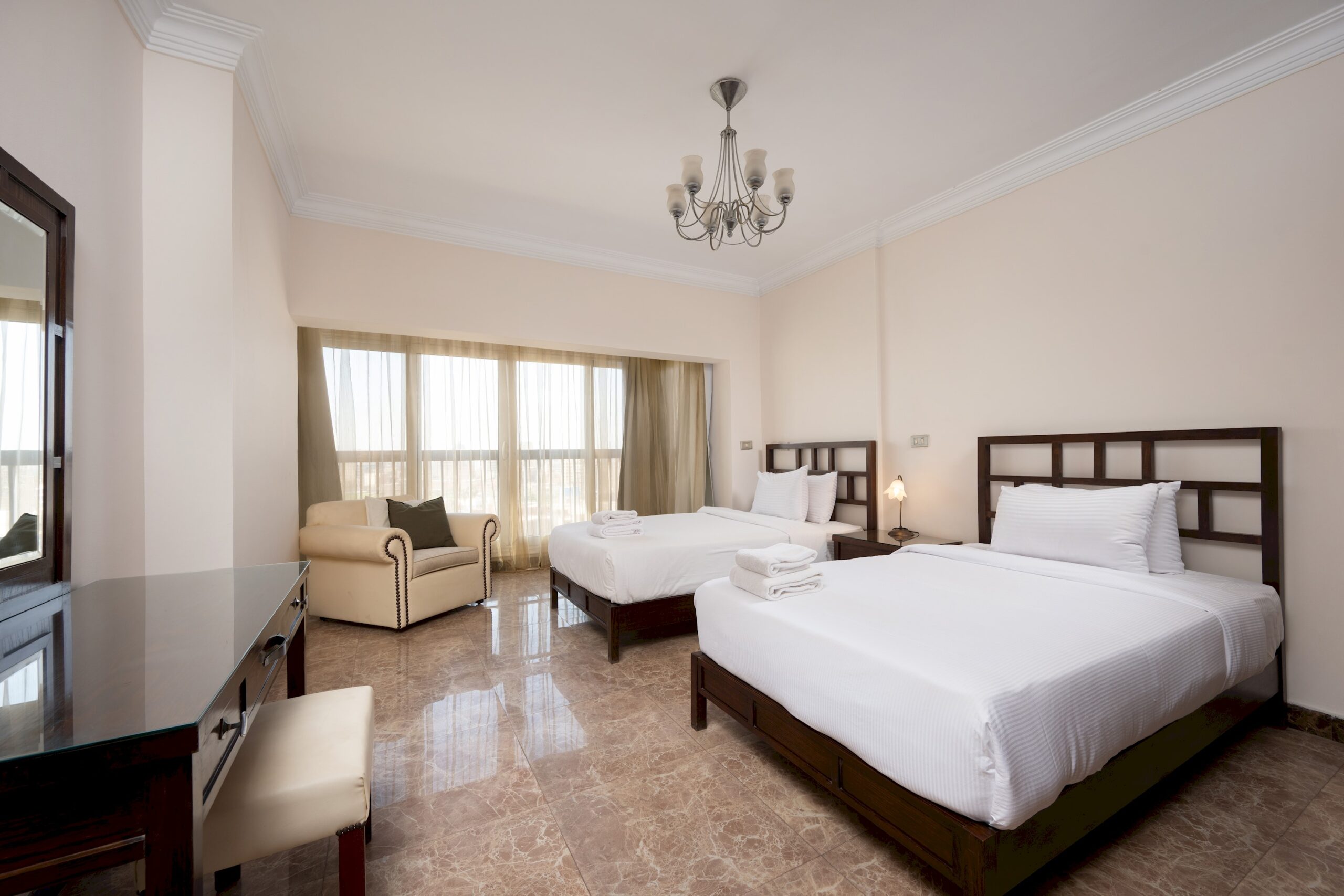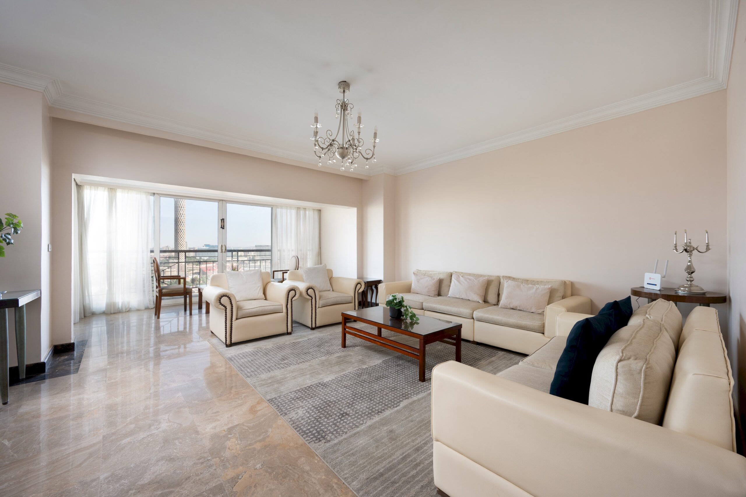 Luxury Apartment in Dokki, Cairo. A very fresh theme in the heart The Nile overlooking Nile River. Complimentary housekeeping is provided on the 7th day for stays of a full week. Additional housekeeping can be arranged through the channel by contacting us for an extra fee. Netflix and free Wi-Fi.