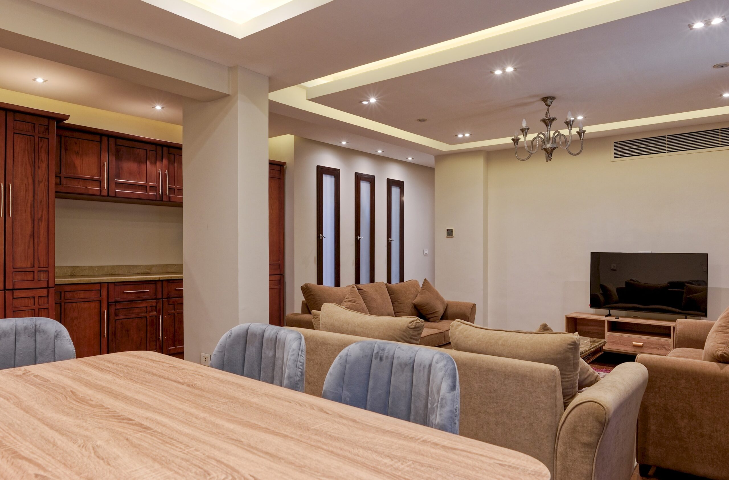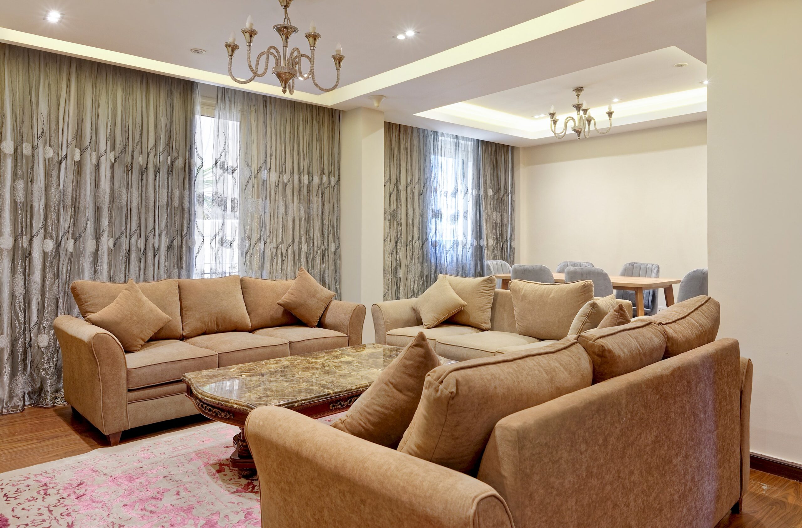 Luxury APT located in New Cairo, Cairo. A very fresh theme in the heart of New Cairo overlooking. Complimentary housekeeping is provided on the 7th day for stays of a full week. Additional housekeeping can be arranged through the channel by contacting us for an extra fee. Netflix and free Wi-Fi.