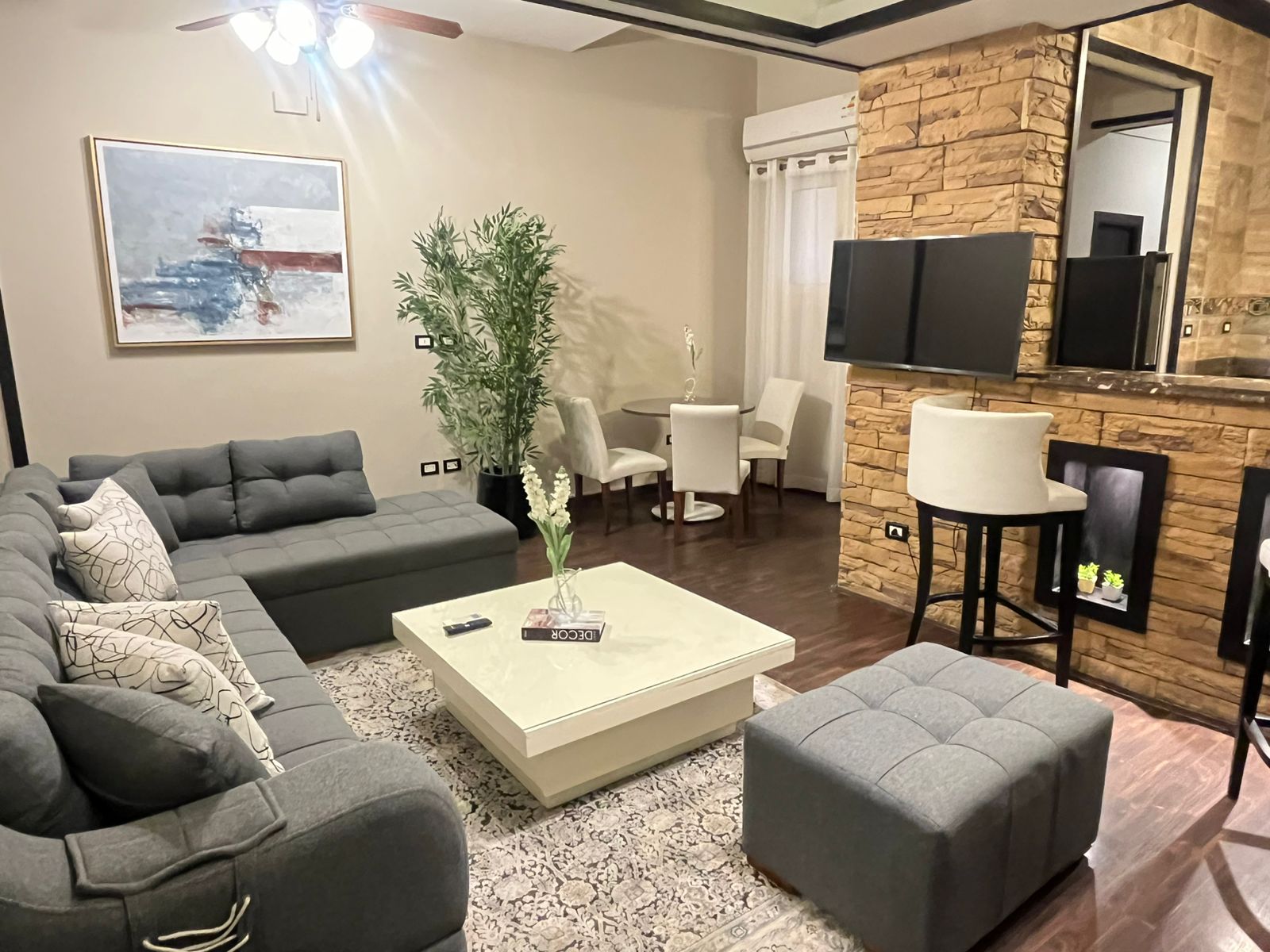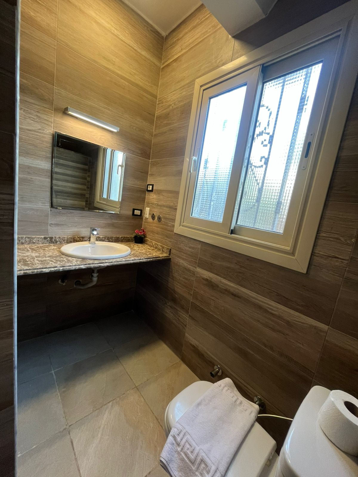 Modern duplex in New Cairo. With a contemporary design and a private heated pool, it offers comfort and privacy in a prime location. Complimentary housekeeping is provided on the 7th day for stays of a full week. Additional housekeeping can be arranged through the channel by contacting us for an extra fee. Netflix and free Wi-Fi.