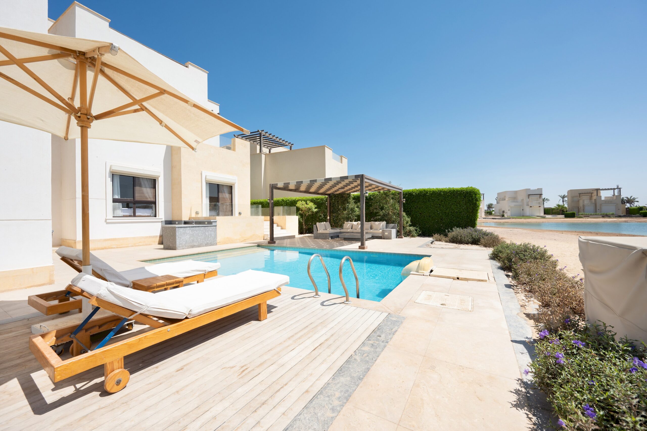 Villa CY-57 is located in El Gouna Cyan area. A very relaxing theme that comes with a private heated pool. Guests enjoy our hotel services of housekeeping every 2 days, room service, Netflix and free Wi-Fi.