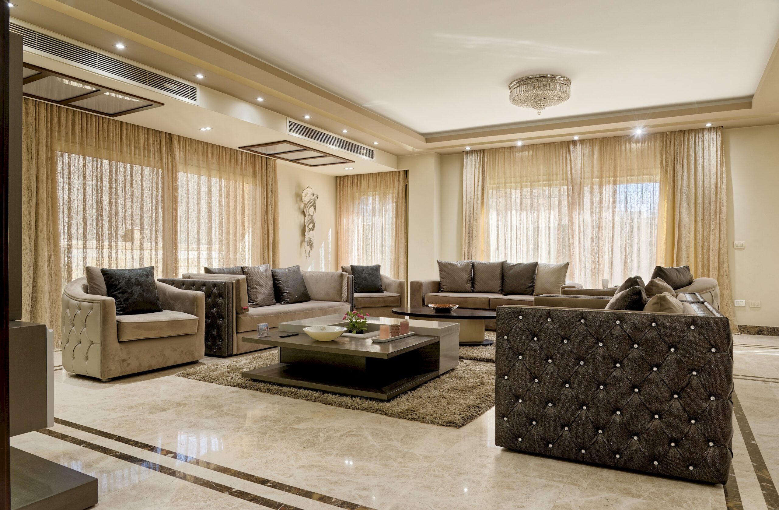 Luxurious Villa located in New Cairo, Cairo. A very fresh theme in the heart of New Cairo. Complimentary housekeeping is provided on the 7th day for stays of a full week. Additional housekeeping can be arranged through the channel by contacting us for an extra fee. Netflix and free Wi-Fi.