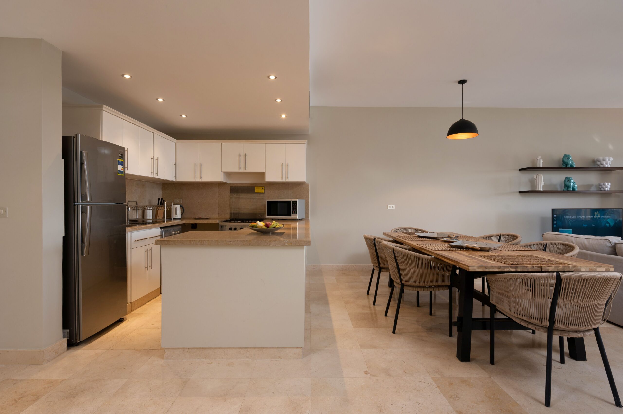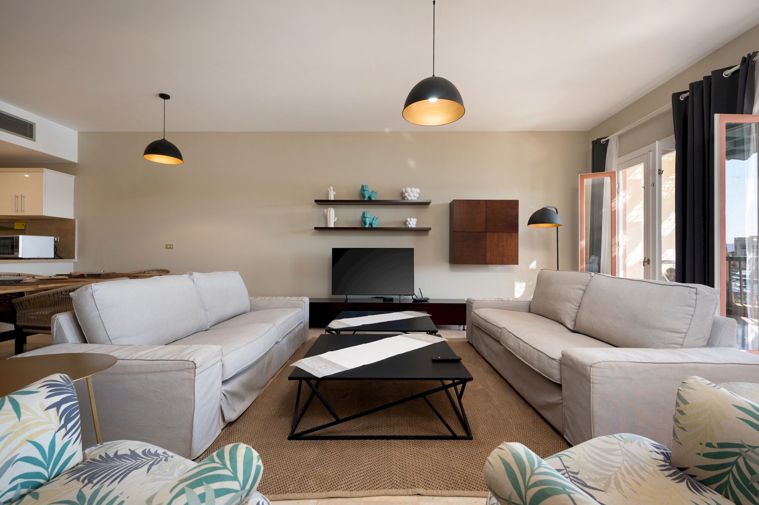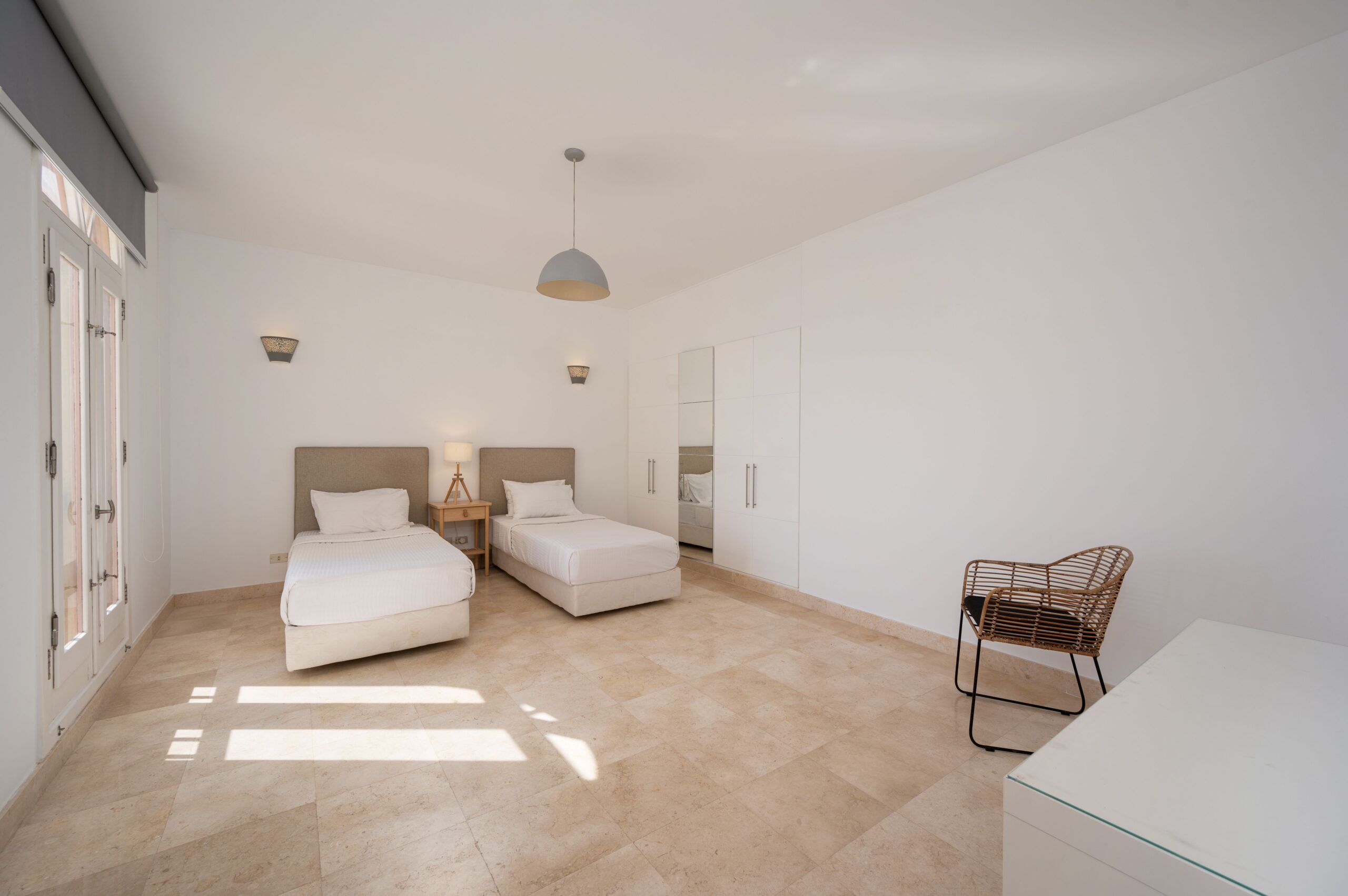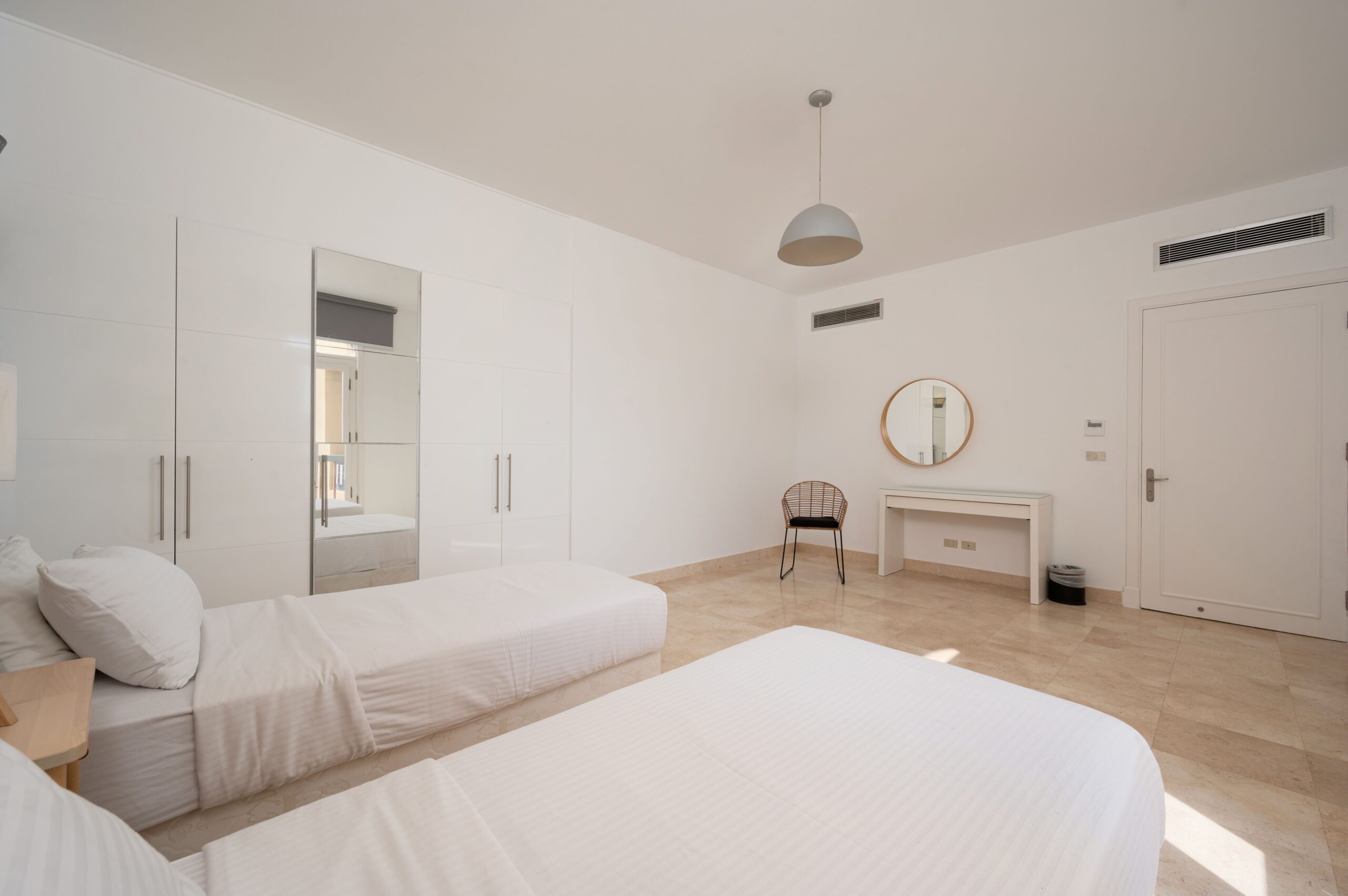 Apartment MB34 is located in New Marina, El Gouna. A very sleek design and a relaxing theme with a full sea view on first line to the beach. Guests enjoy our hotel services of housekeeping every 2 days, room service, Netflix and free Wi-Fi.