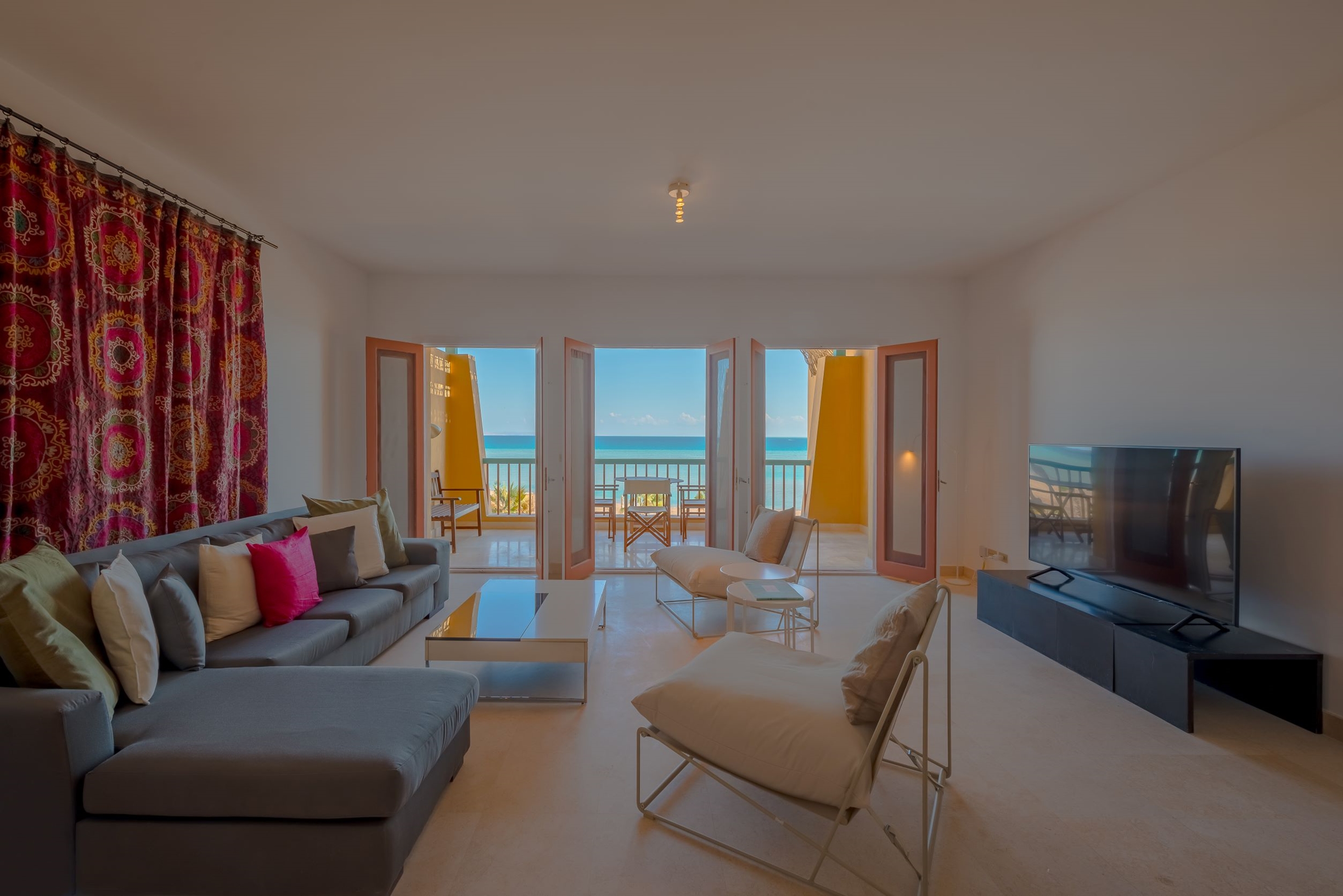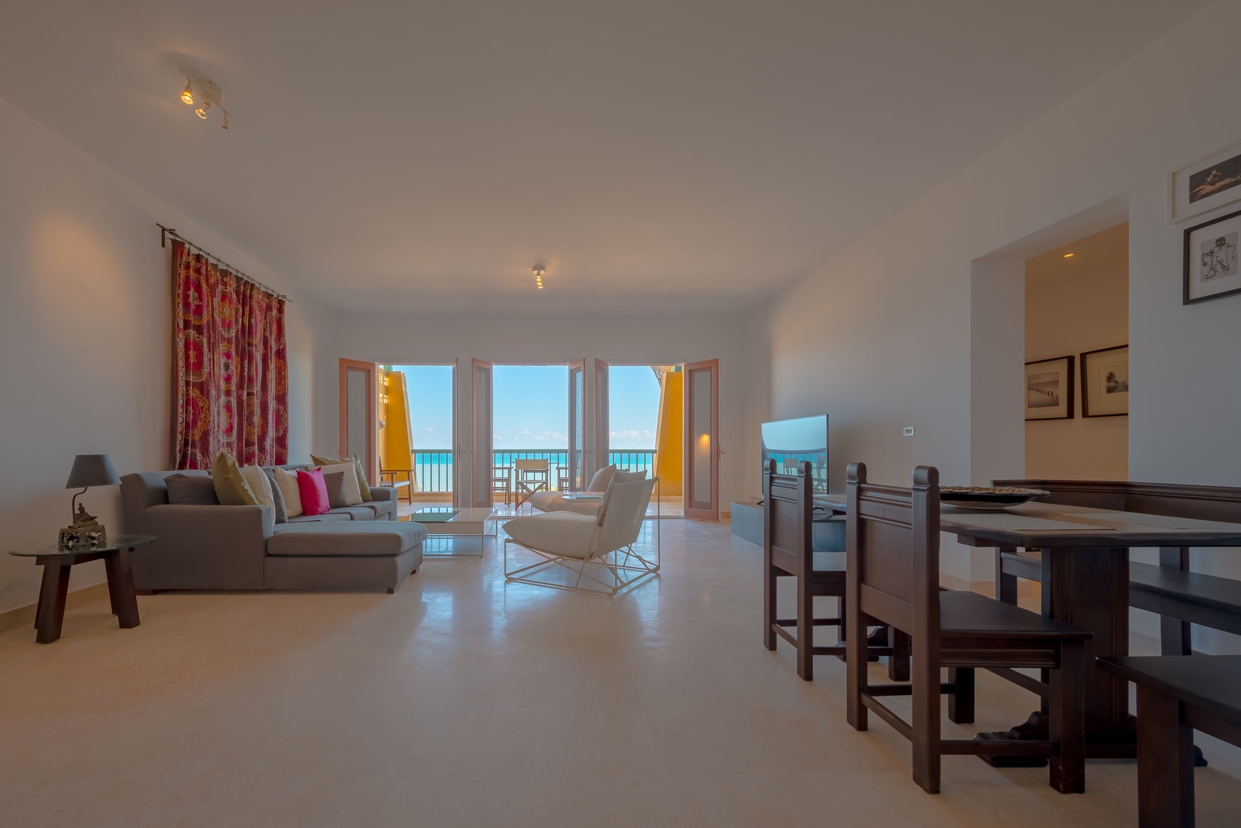 Apartment MB37 is located in New Marina, El Gouna. A very sleek design and a relaxing theme with a full sea view on first line to the beach. Guests enjoy our hotel services of housekeeping every 2 days, room service, Netflix and free Wi-Fi.