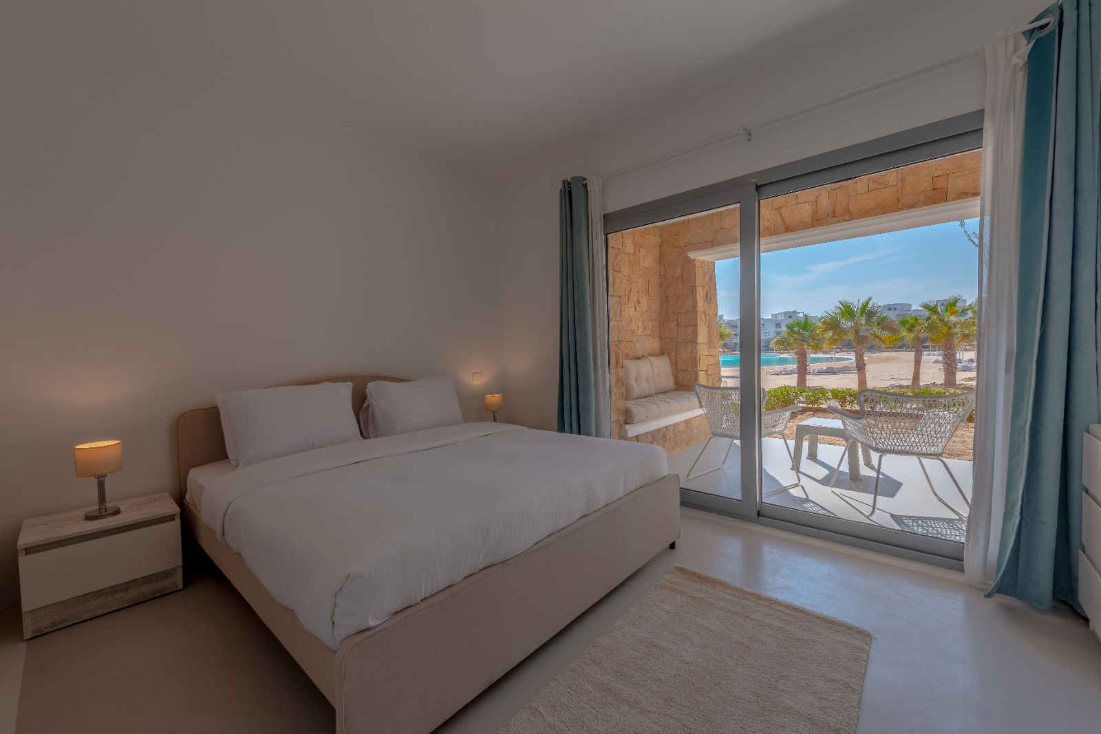 Apartment 08-G-05 is located in Swan Lake, El Gouna. A very fresh theme that comes with an access to the Lake. Guests enjoy our hotel services of housekeeping every 2 days, room service, Netflix and free Wi-Fi.